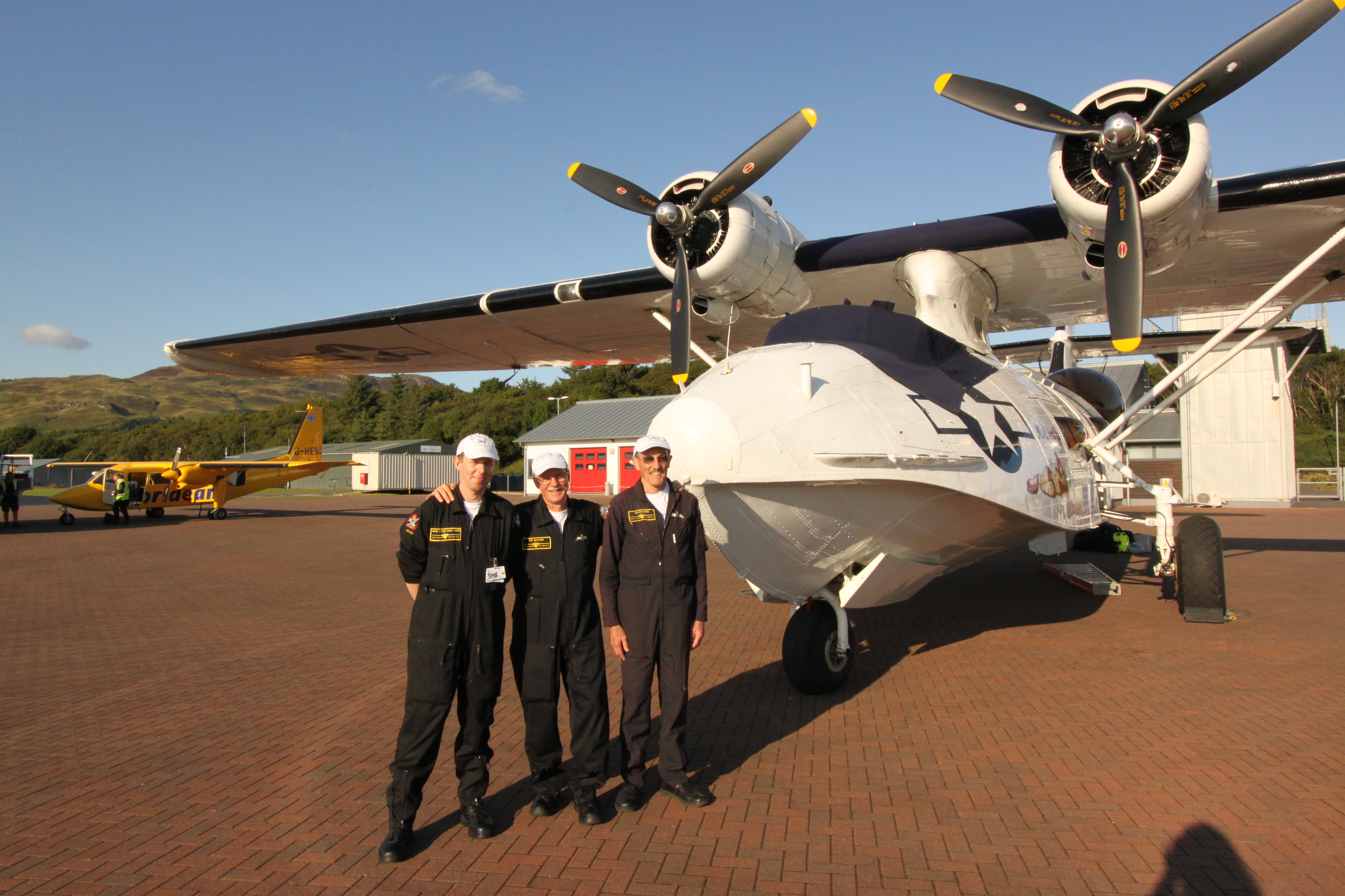 Once on the ground it was a tight taxi on the apron but there were a number of excellent airport ground staff to protect the Catalina’s 104 foot wingspan. Passengers on the local Hebridean Airways flight must have wondered what was happening. Oban Airport Station Manager, Tom Eddlestone, was on hand to welcome the crew and it was blue skies again. Would it last though?