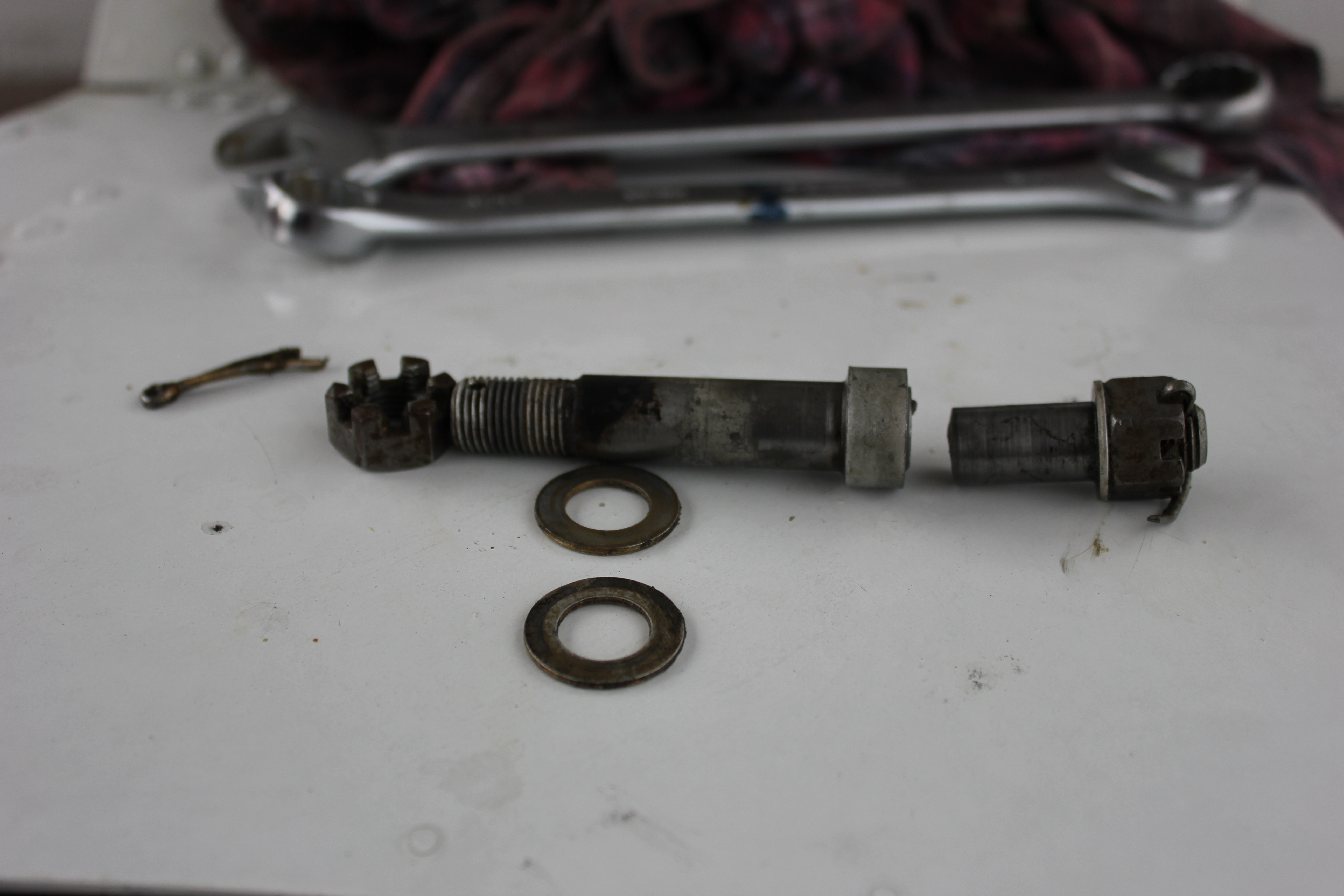 The landing gear ram hanging loose minus the sheared bolt shown below.