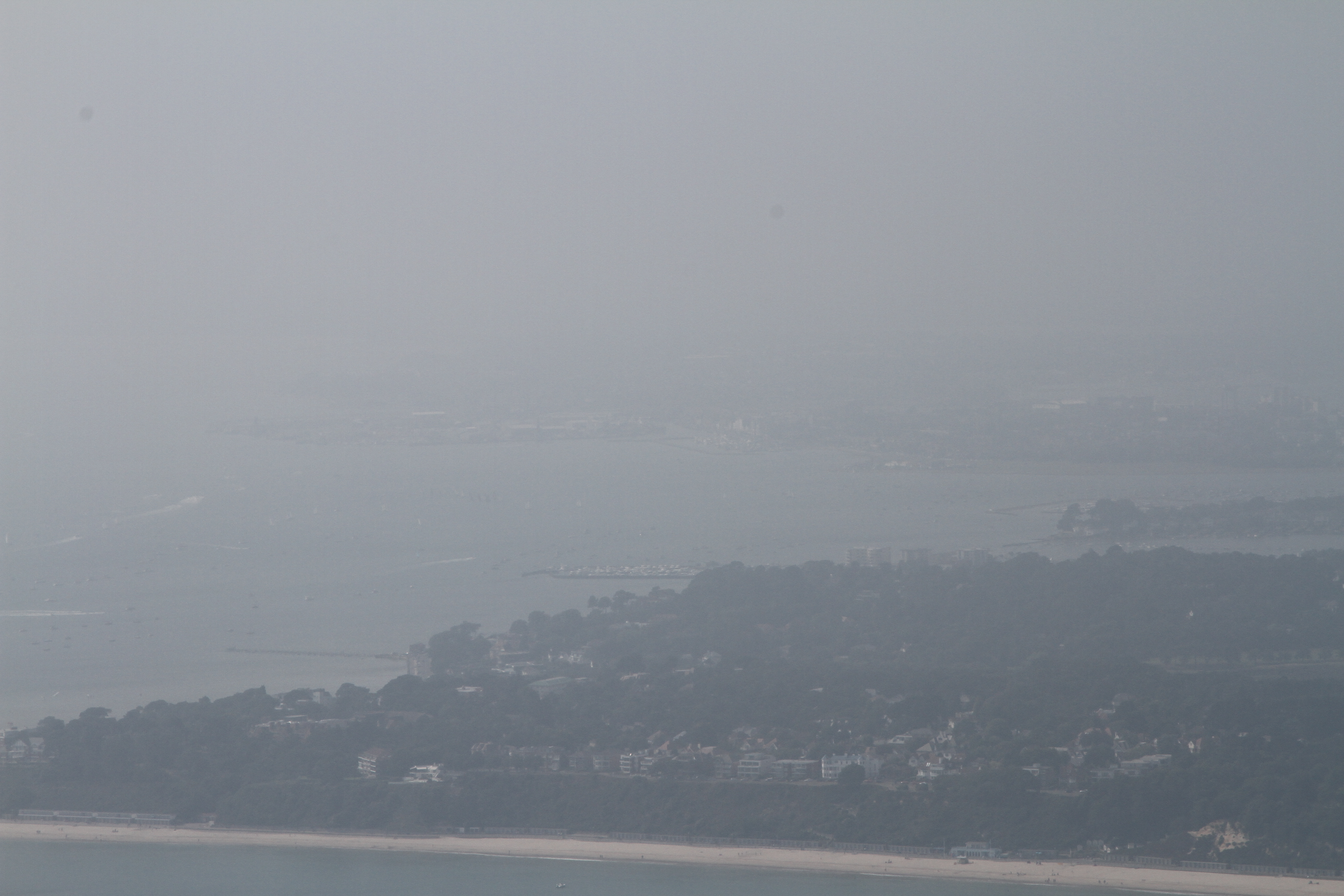 The headlands around Poole were covered in patchy cloud but the Catalina was able to fly along the shoreline of Poole Harbour, well known for its flying boat history. Shortly afterwards and despite the haze, a camera ship flown by Jon Butts and with Karl Drage behind the camera came alongside. It was planned to do some more air to air shots as the Catalina flew past the Needles and the southern coastline of the Isle of Wight before heading up Southampton Water. By this stage Solent Radar and then Southampton ATC were providing a very helpful service to both aircraft.