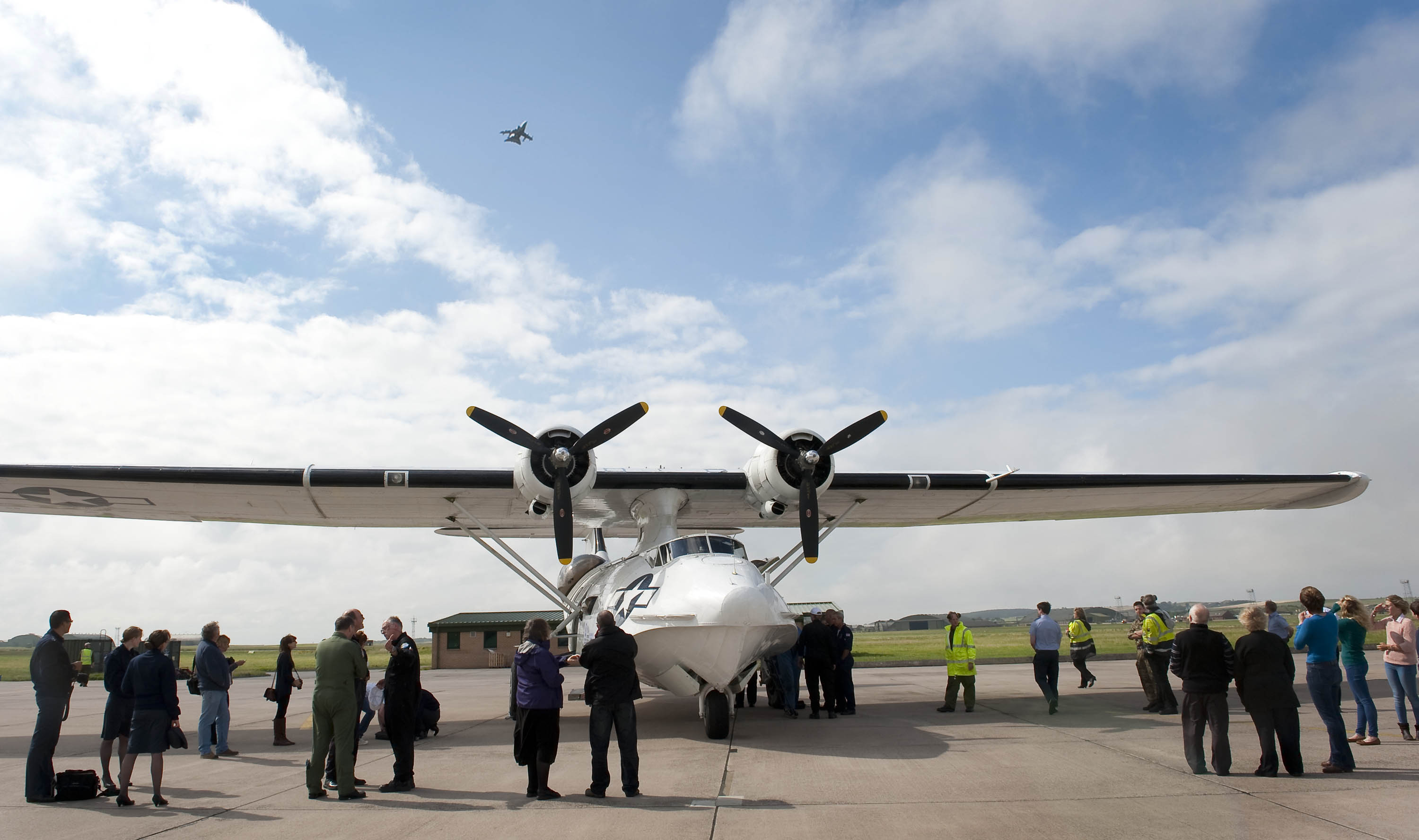 The Catalina arrived at Falmouth at the time indicated on the schedule. Jeff flew up the estuary and then turned to port to come back past Mylor and Flushing. Dropping down abeam the Royal Cornwall Yacht Club, the 1913 Control Point, John then took control for the air display. This was over the sea between Pendennis Castle and Pennance Point. Here are a couple of clips of that. http://www.youtube.com/watch?v=BQ3WKazhOow and http://www.youtube.com/watch?v=415uFN4P7KA&feature=youtu.be